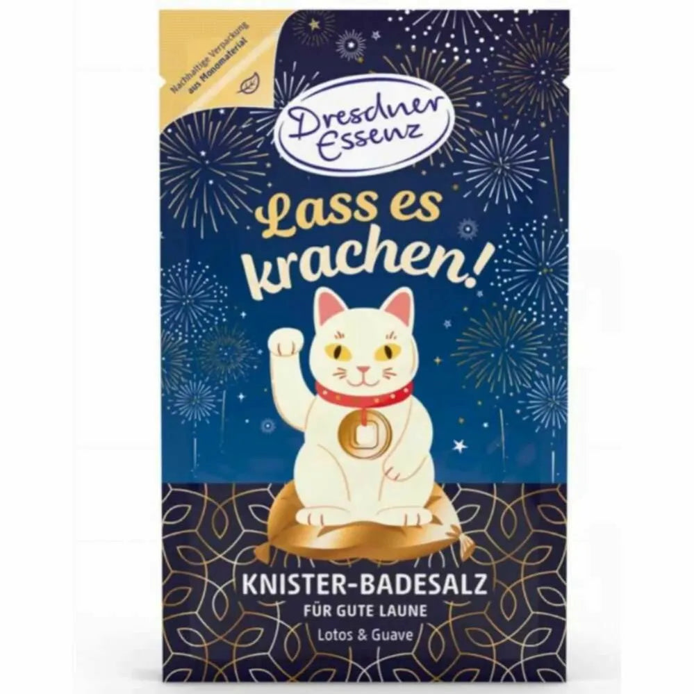 Ciesz się życiem w pełni i naprawdę pozwól mu rozkwitać! strzelające kryształki naszej soli do kąpieli NA SZCZĘŚCIE powodują, że w Twojej łazience rozbrzmiewają małe fajerwerki i tworzą żywiołową atmosferę. „Machający kot” (jap. Manekineko) również obiecuje szczęście i dobrobyt. Kwiatowo-owocowy zapach lotosu i gujawy pomoże Ci się zrelaksować i cieszyć chwilą. Intensywnie pielęgnujący kompleks z olejkami roślinnymi odżywia skórę i zapobiega jej wysuszeniu.